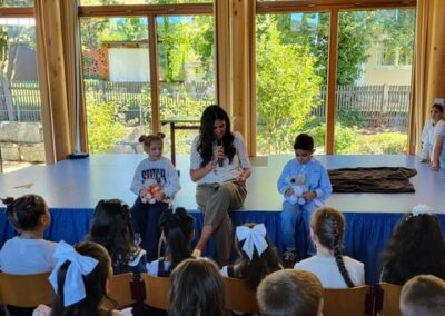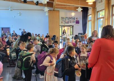 Voll neuer Eindrücke kehrten die frisch gebackenen Schulkinder zu ihren Familien zurück und zeigten stolz ihr neues Klassenzimmer. Außerdem bot sich die Gelegenheit, diesen besonderen Moment mit der neuen Klassenlehrerin und der Familie als Erinnerungsfoto festzuhalten – ein emotionaler Start in die gemeinsame Schulzeit.