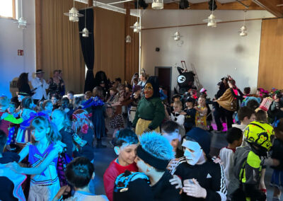 Am 13. Februar 2026 feierten wir an der Schule am Ipf einen bunten Schulfasching. Der Tag begann mit einem Besuch der Burgnarren vom Schloßberg, dem Prinzenpaar und einigen Hexen, die unsere Schule mit guter Laune und einer kleinen Showeinlage begrüßten. Danach fanden in den Klassen Faschingspartys statt, bei denen die besten Kostüme gekürt wurden. Die drei Gewinner der jeweiligen Klassen durften sich anschließend der ganzen Schule präsentieren. Mittels eines „Applausometer“ wurden die besten Kostüme ermittelt und im Anschluss prämiert, was für viel Spaß und Spannung sorgte. Den Abschluss bildete eine große Faschingsparty in der Aula, bei der sowohl Schülerinnen und Schüler als auch Lehrkräfte ihre Tanzkünste zeigen konnten.